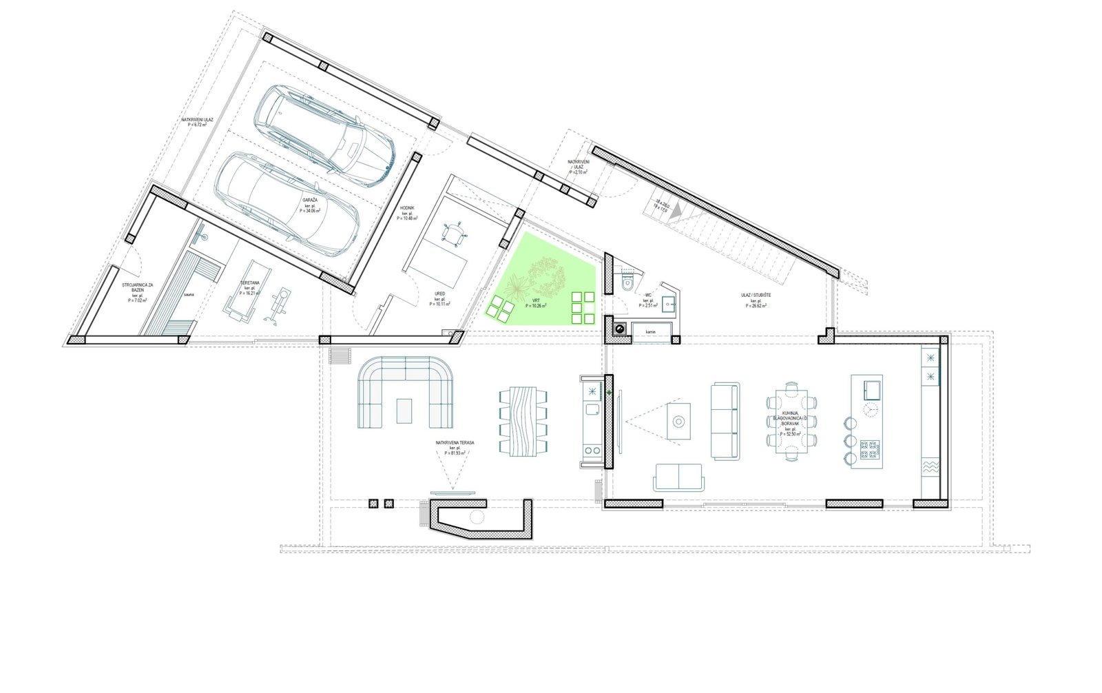 The villa stands on an 954 m² plot and includes a carefully designed and comfortable interior, a double garage, a large terrace, and an infinity pool, making up a total area of 517,37 m².